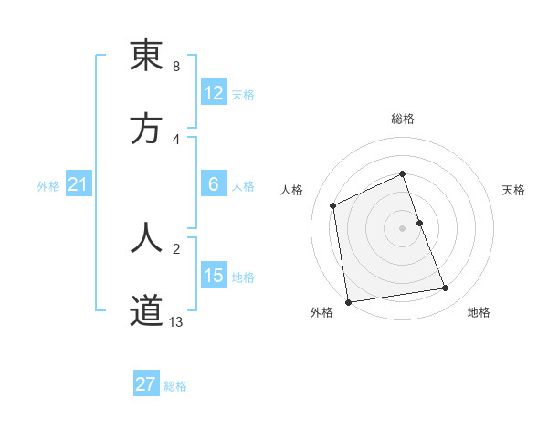 東方 人道さんの総格は27画の3点!