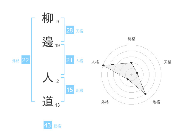 柳邊 人道さんを姓名の画数から五運を鑑定