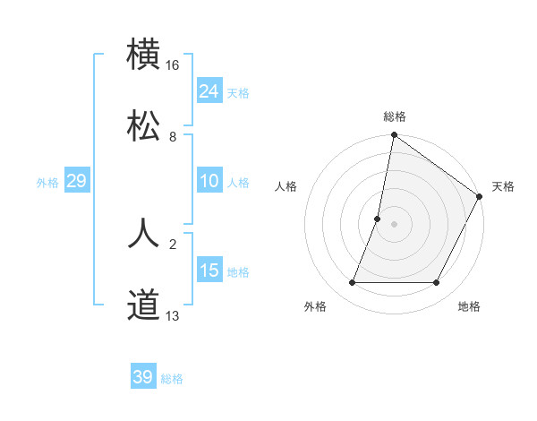 横松 人道さんの総格は39画の5点!