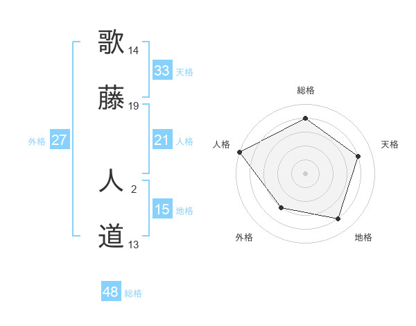 歌藤 人道さんを姓名の画数から五運を鑑定
