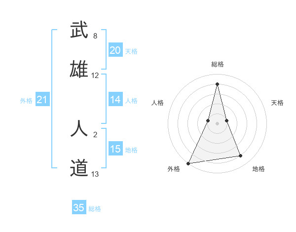 武雄 人道さんの総格は35画の4点!