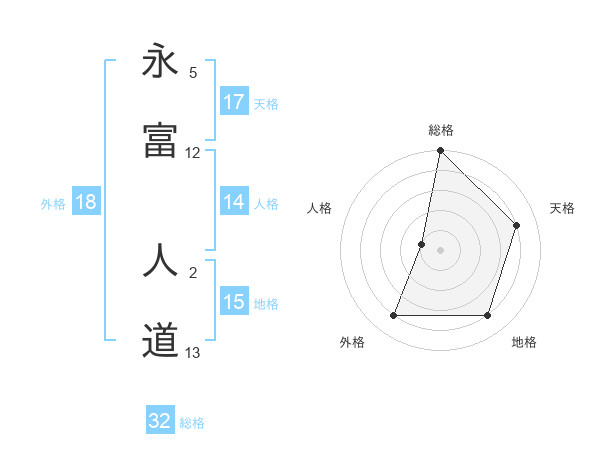 永富 人道さんの総格は32画の5点!