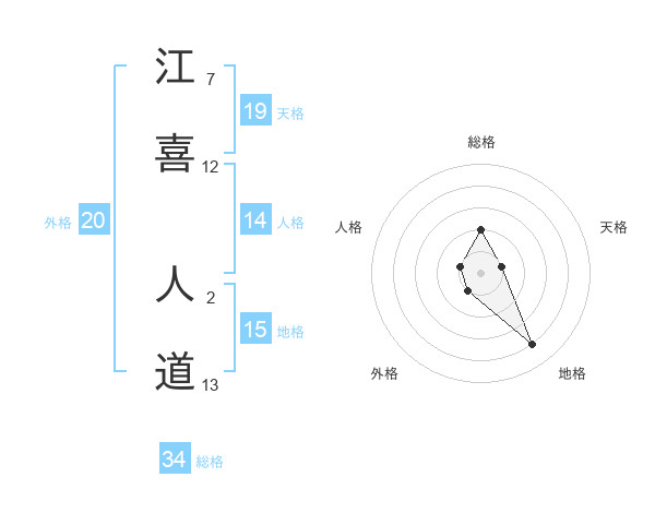 江喜 人道さんの総格は34画の2点!