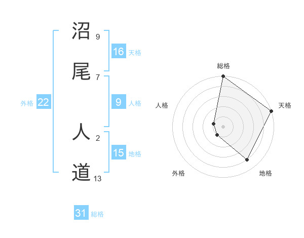 沼尾 人道さんの総格は31画の5点!