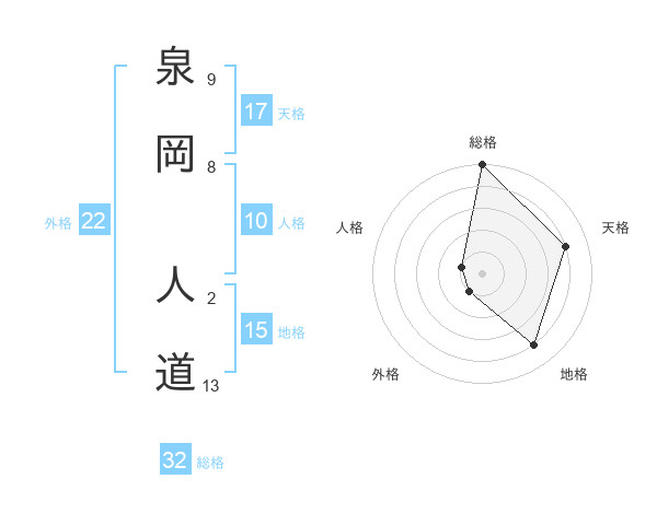 泉岡 人道さんの総格は32画の5点!