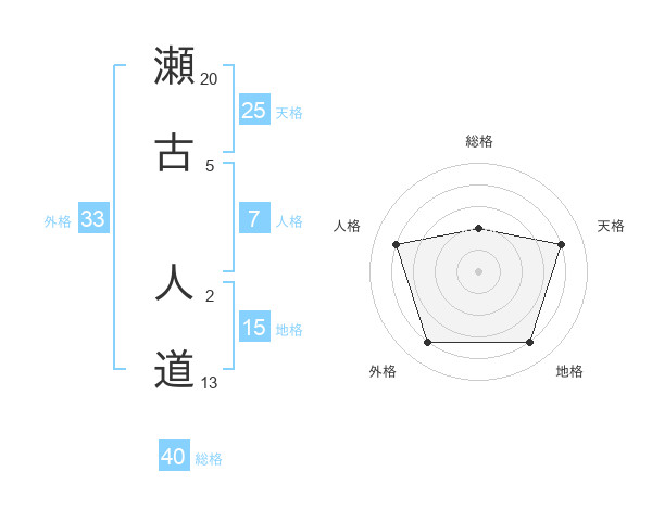 瀬古 人道さんを姓名の画数から五運を鑑定