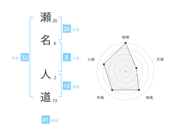 瀬名 人道さんを姓名の画数から五運を鑑定