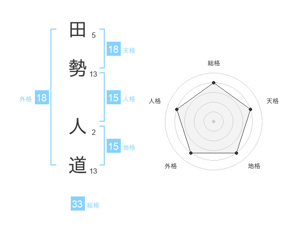 田勢 人道さんの天格は18画の4点!