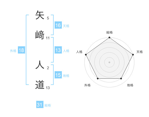矢﨑 人道さんの総格は31画の5点!