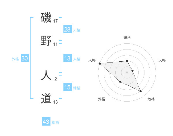 磯野 人道さんの地格は15画の4点!