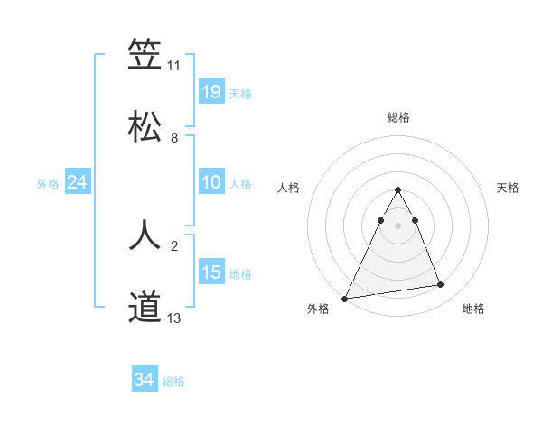 笠松 人道さんの総格は34画の2点!