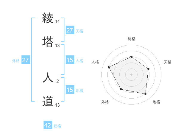 綾塔 人道さんを姓名の画数から五運を鑑定