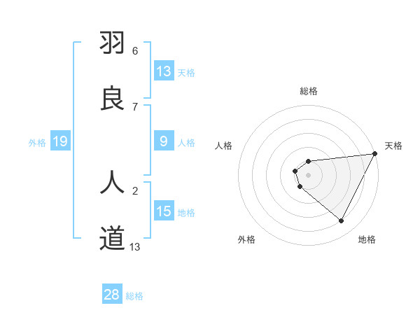 羽良 人道さんの天格は13画の5点!