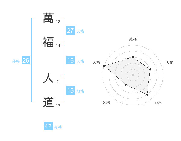萬福 人道さんの総格は42画の3点!