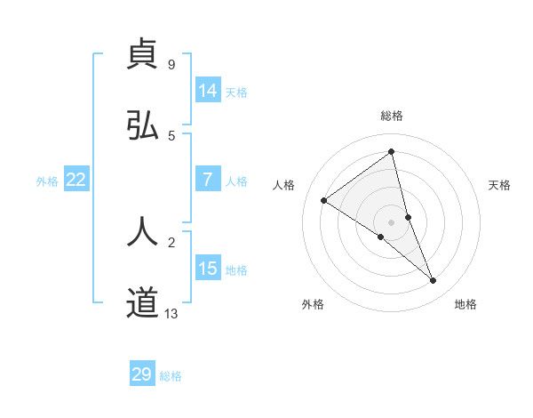 貞弘 人道さんの総格は29画の4点!