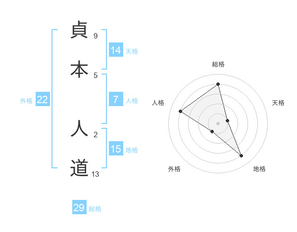 貞本 人道さんの総格は29画の4点!