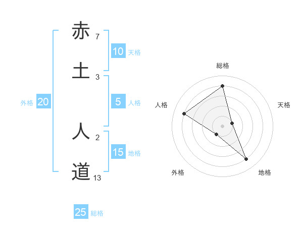 赤土 人道さんの総格は25画の4点!