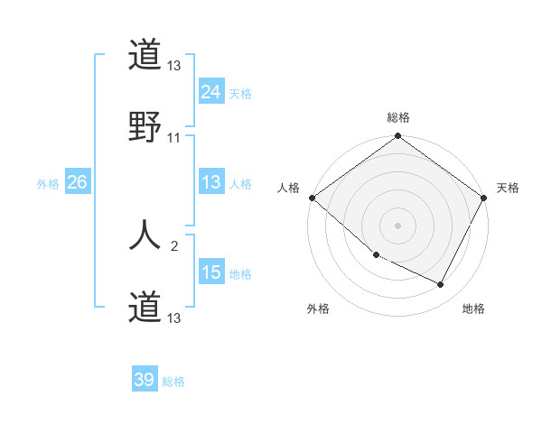 道野 人道さんの天格は24画の5点!