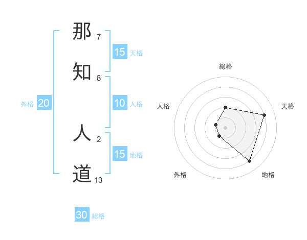 那知 人道さんの総格は30画の2点!