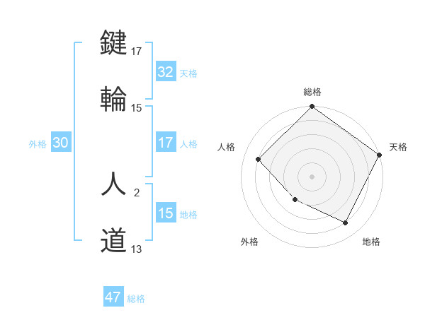 鍵輪 人道さんの総格は47画の5点!