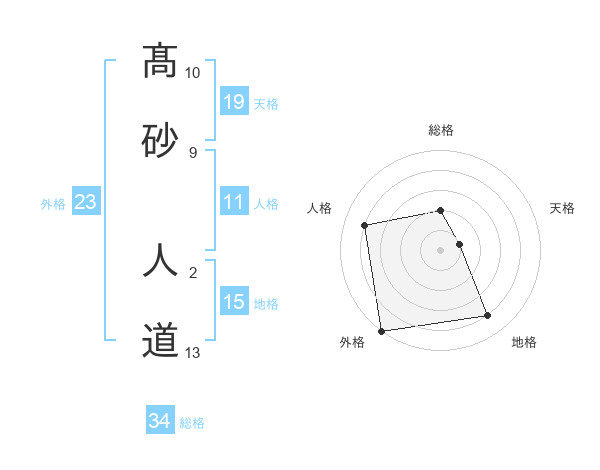 髙砂 人道さんを姓名の画数から五運を鑑定