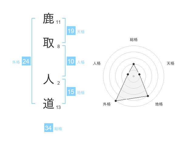 鹿取 人道さんを姓名の画数から五運を鑑定