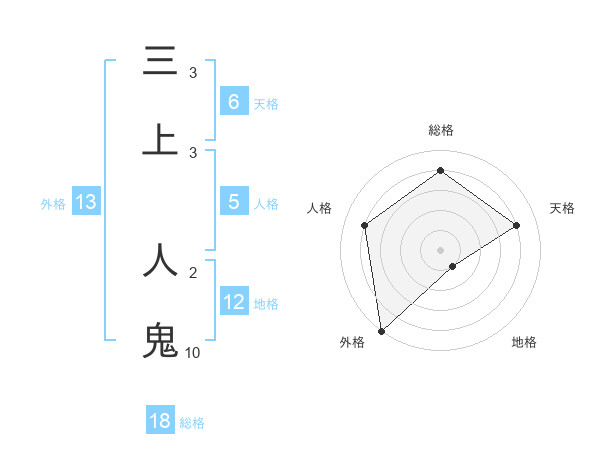 三上 人鬼さんの外格は13画の5点!