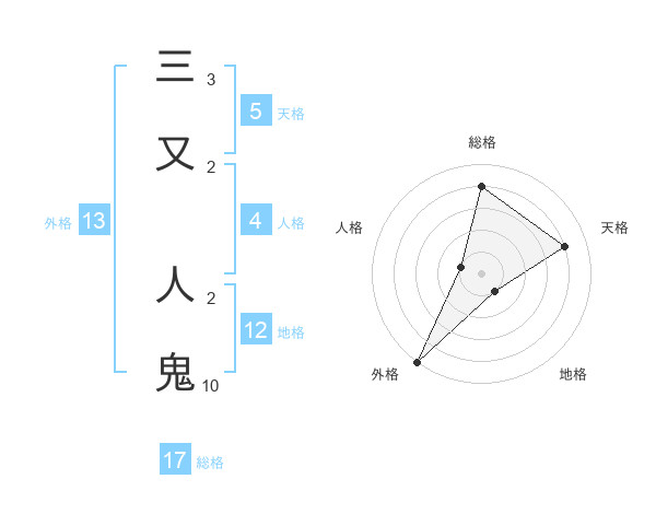 三又 人鬼さんの外格は13画の5点!