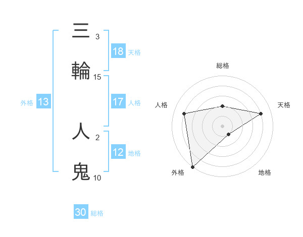 三輪 人鬼さんの外格は13画の5点!