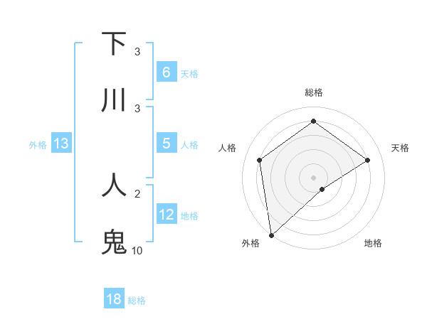 下川 人鬼さんの外格は13画の5点!