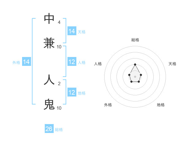中兼 人鬼さんの総格は26画の2点!