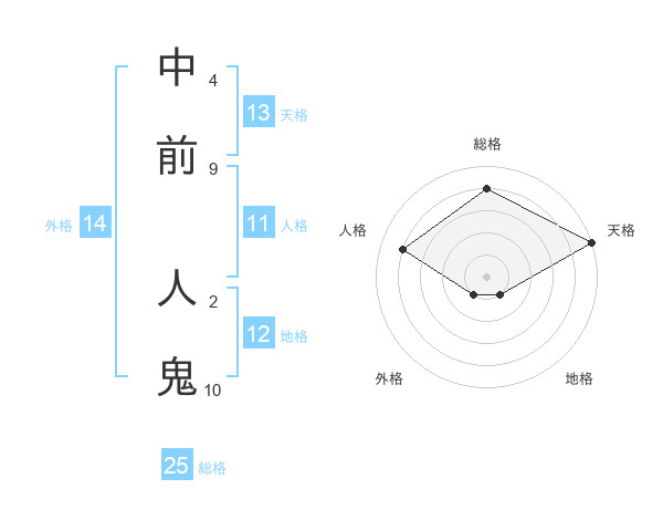 中前 人鬼さんの総格は25画の4点!