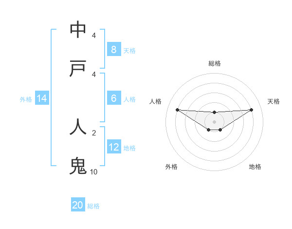 中戸 人鬼さんを姓名の画数から五運を鑑定