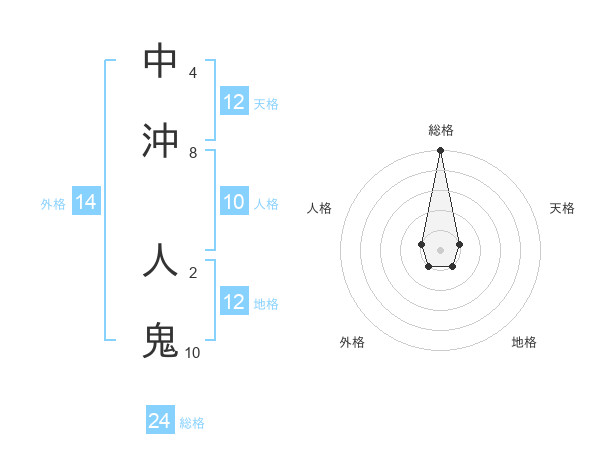 中沖 人鬼さんを姓名の画数から五運を鑑定