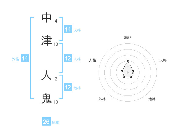 中津 人鬼さんの総格は26画の2点!