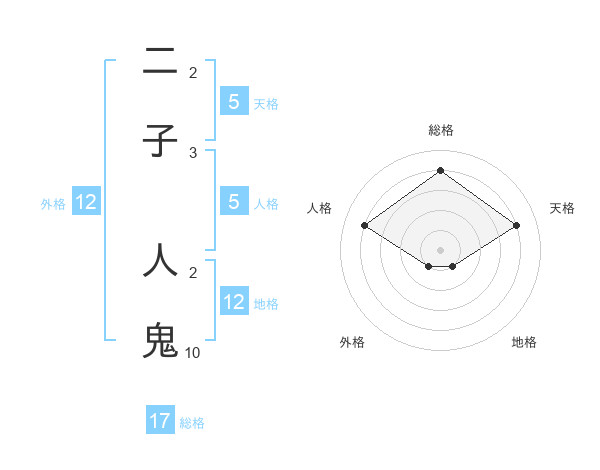 二子 人鬼さんの総格は17画の4点!