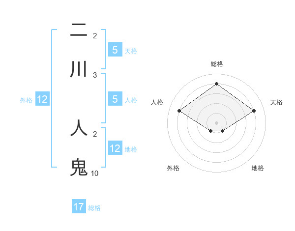 二川 人鬼さんの天格は5画の4点!