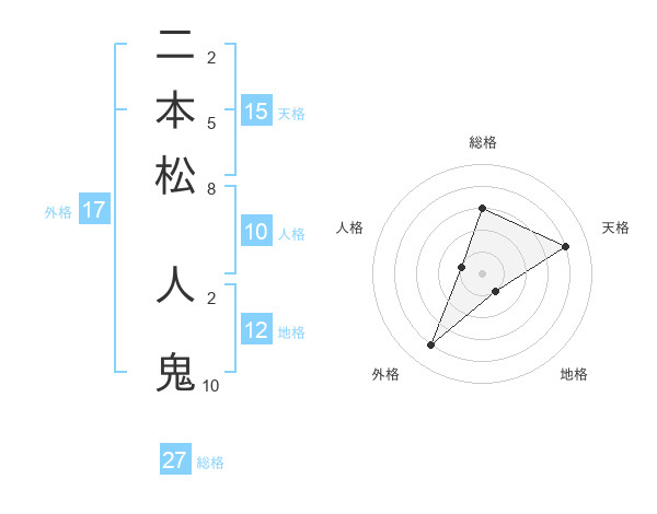 二本松 人鬼さんを姓名の画数から五運を鑑定