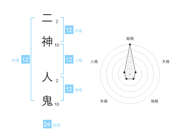 二神 人鬼さんの総格は24画の5点!