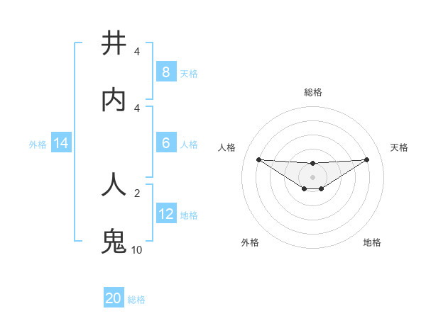 井内 人鬼さんを姓名の画数から五運を鑑定