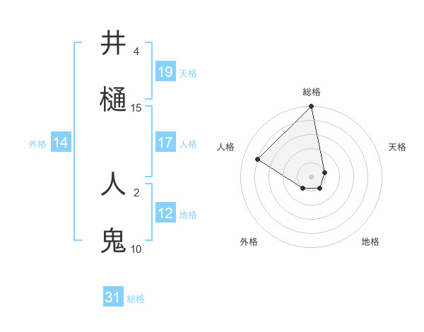 井樋 人鬼さんを姓名の画数から五運を鑑定