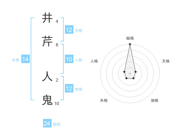 井芹 人鬼さんを姓名の画数から五運を鑑定
