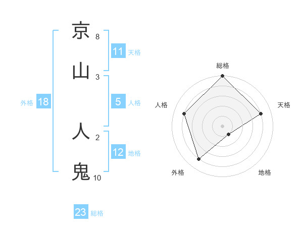 京山 人鬼さんを姓名の画数から五運を鑑定