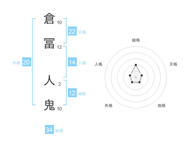 倉冨 人鬼さんの総格は34画の2点!