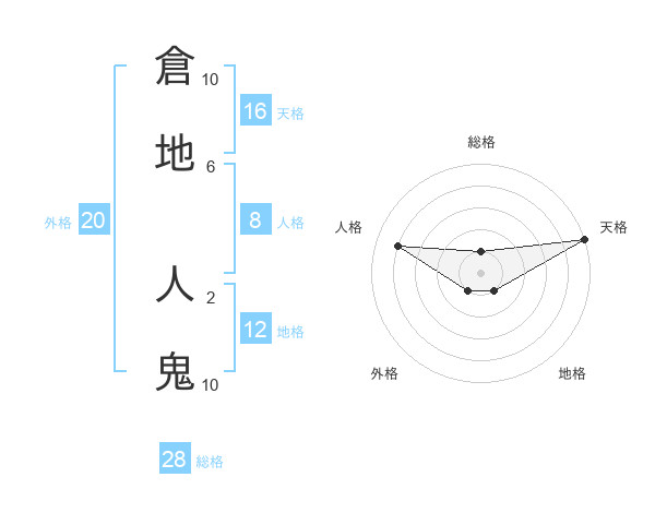 倉地 人鬼さんの総格は28画の1点!