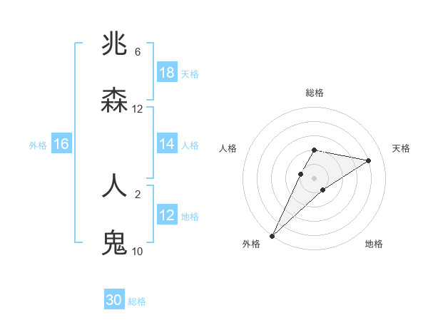 兆森 人鬼さんを姓名の画数から五運を鑑定