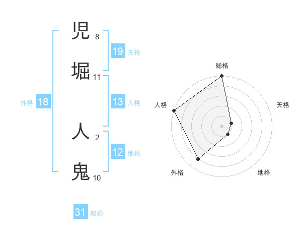 児堀 人鬼さんの総格は31画の5点!