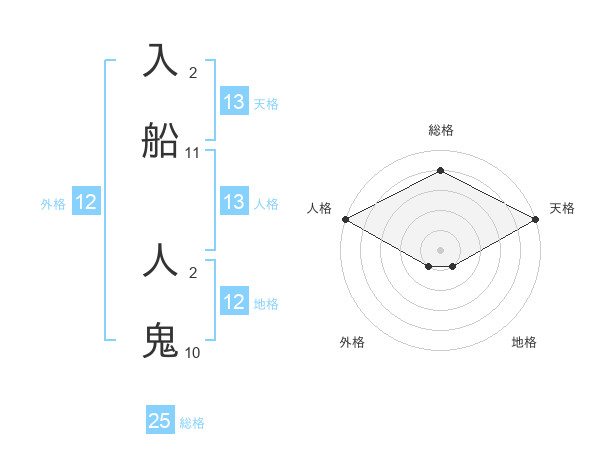 入船 人鬼さんの天格は13画の5点!