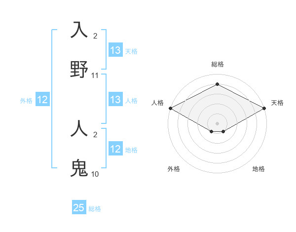入野 人鬼さんを姓名の画数から五運を鑑定