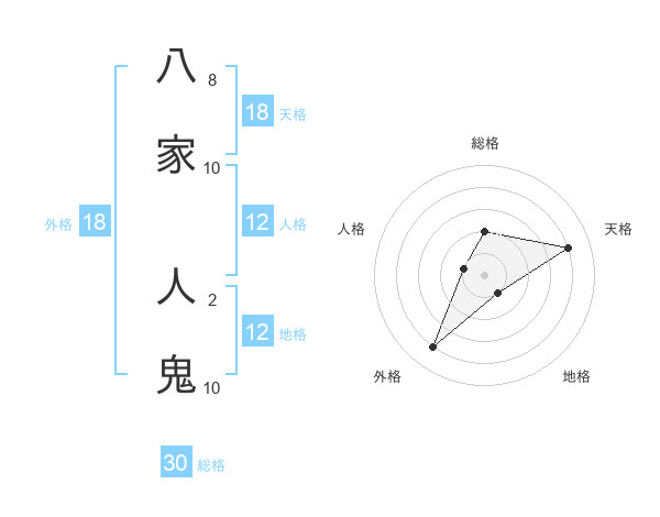 八家 人鬼さんを姓名の画数から五運を鑑定